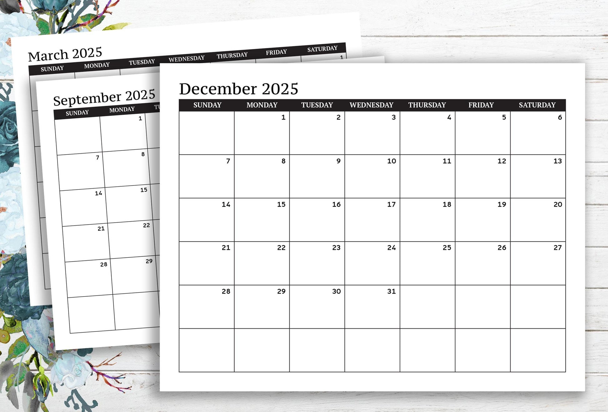 2025 Dated Calendar Grid ~ Sunday Start ~ Printable PDF ~ Horizontal Layout