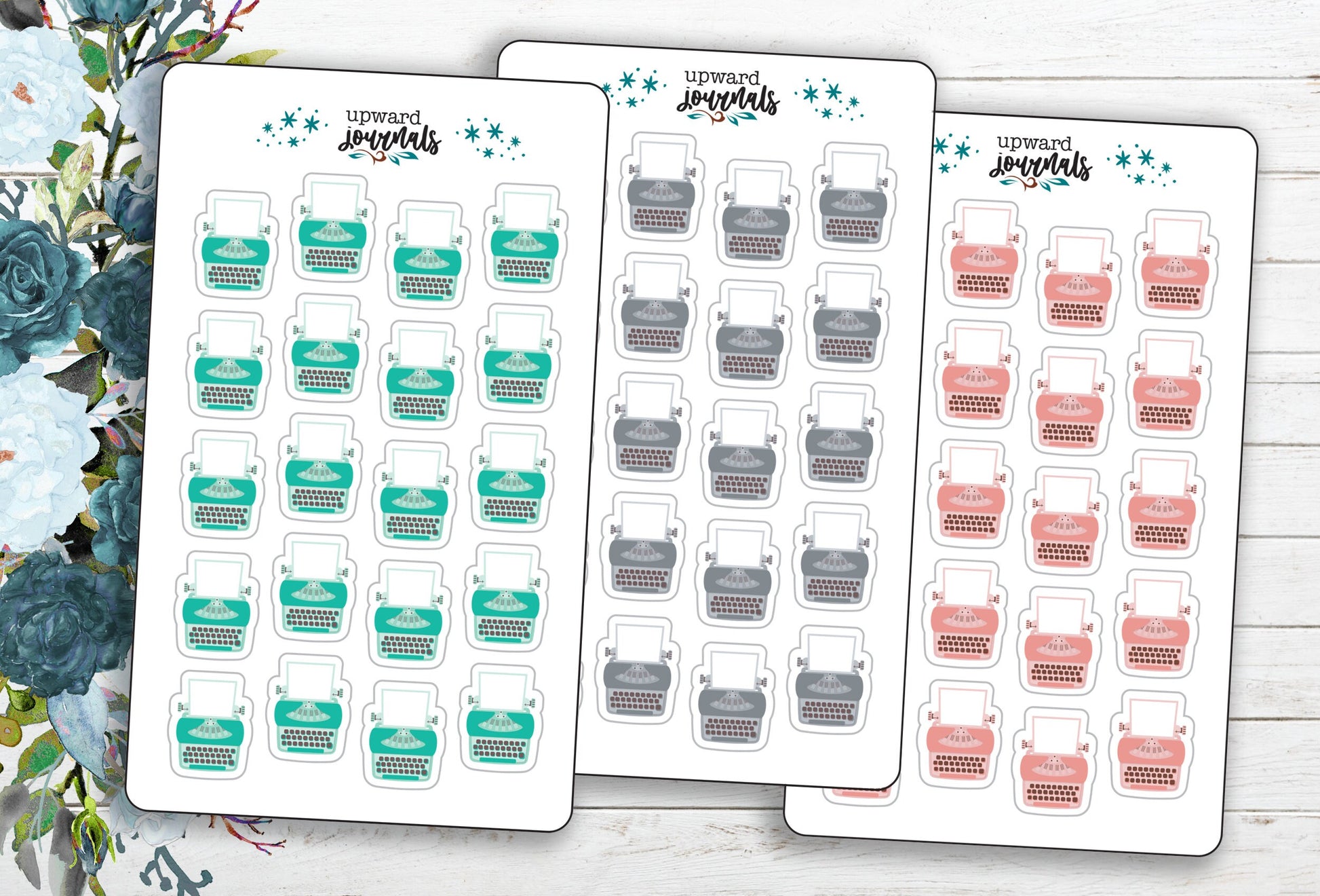 Mini Typewriters Planner Stickers ~ Mint Green, Pink, Gray ~ Writer, Author Stickers