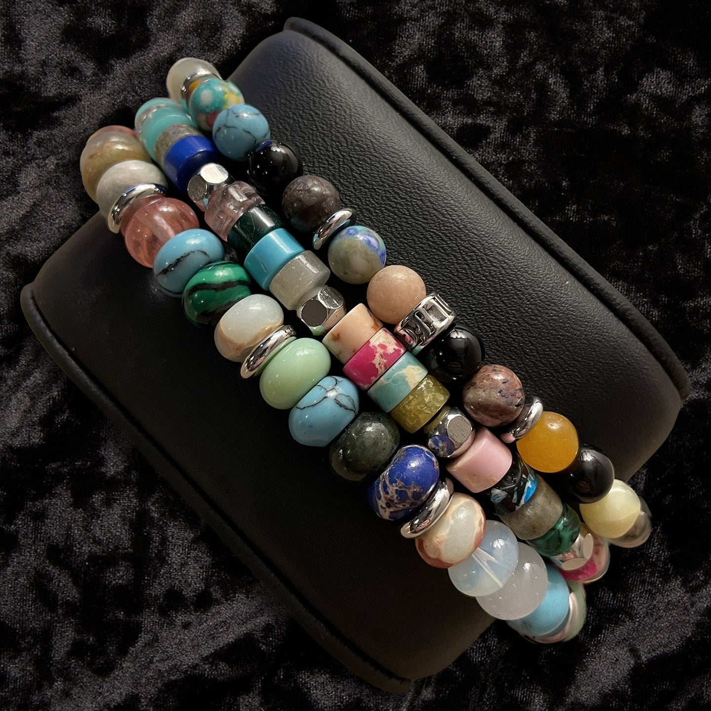 These beautiful bracelets combine the benefits of several gemstones working together to fine tune our own energy.